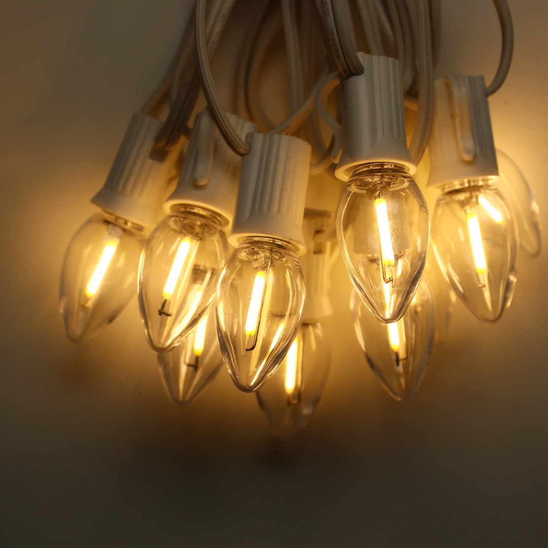 LED and glass C7 Christmas light bulbs are timeless classics, adding a warm and festive touch to any holiday celebration. These bulbs are designed to be installed in separately purchased cords, making them a versatile option for any decorating project. With their iconic shape and warm glow, C7 Christmas light bulbs are a must-have for anyone looking to create a classic holiday atmosphere in their home or yard.