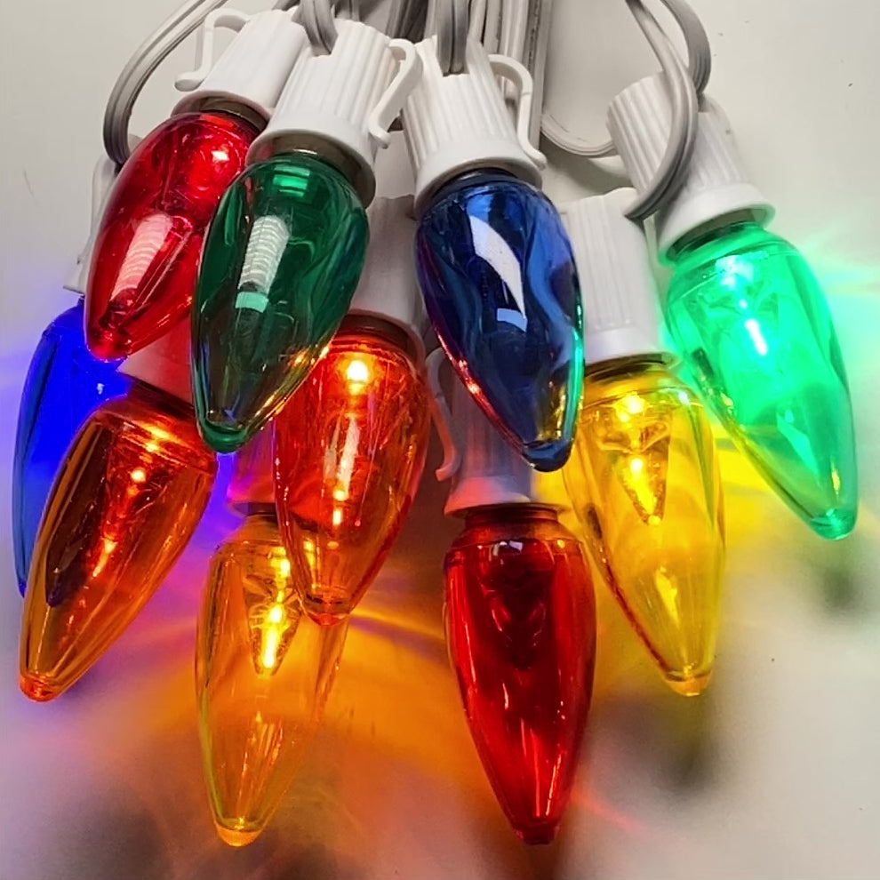 Using the latest in LED Christmas lighting technology, these C9 light strings and C9 bulbs are shaped like traditional C9 bulbs but use up to 90% less electricity than their glass counterparts.