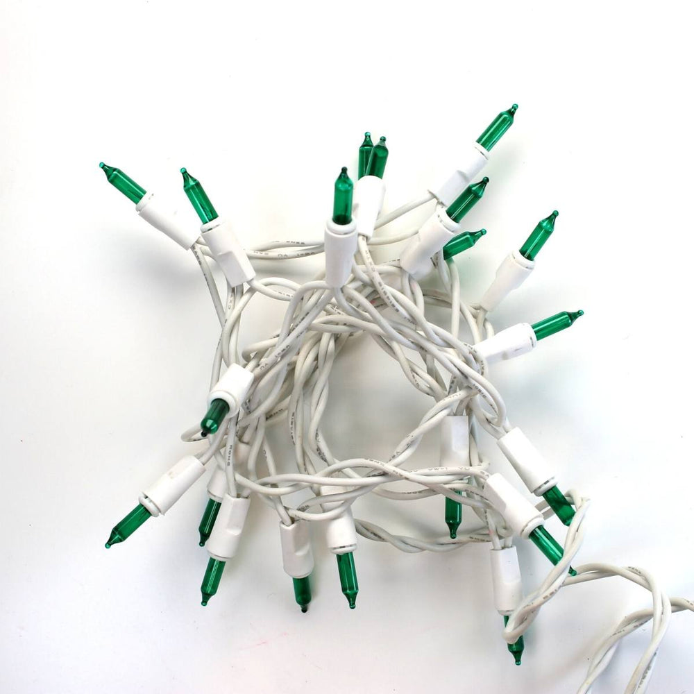 Our green lights come in either glass or LED versions and various lengths based on the number of lights (10, 15, 20 and 35). Lengths are noted on each set. Most of our craft lights have 36 inches of wire between the plug and first light. You'll receive a replacement fuse