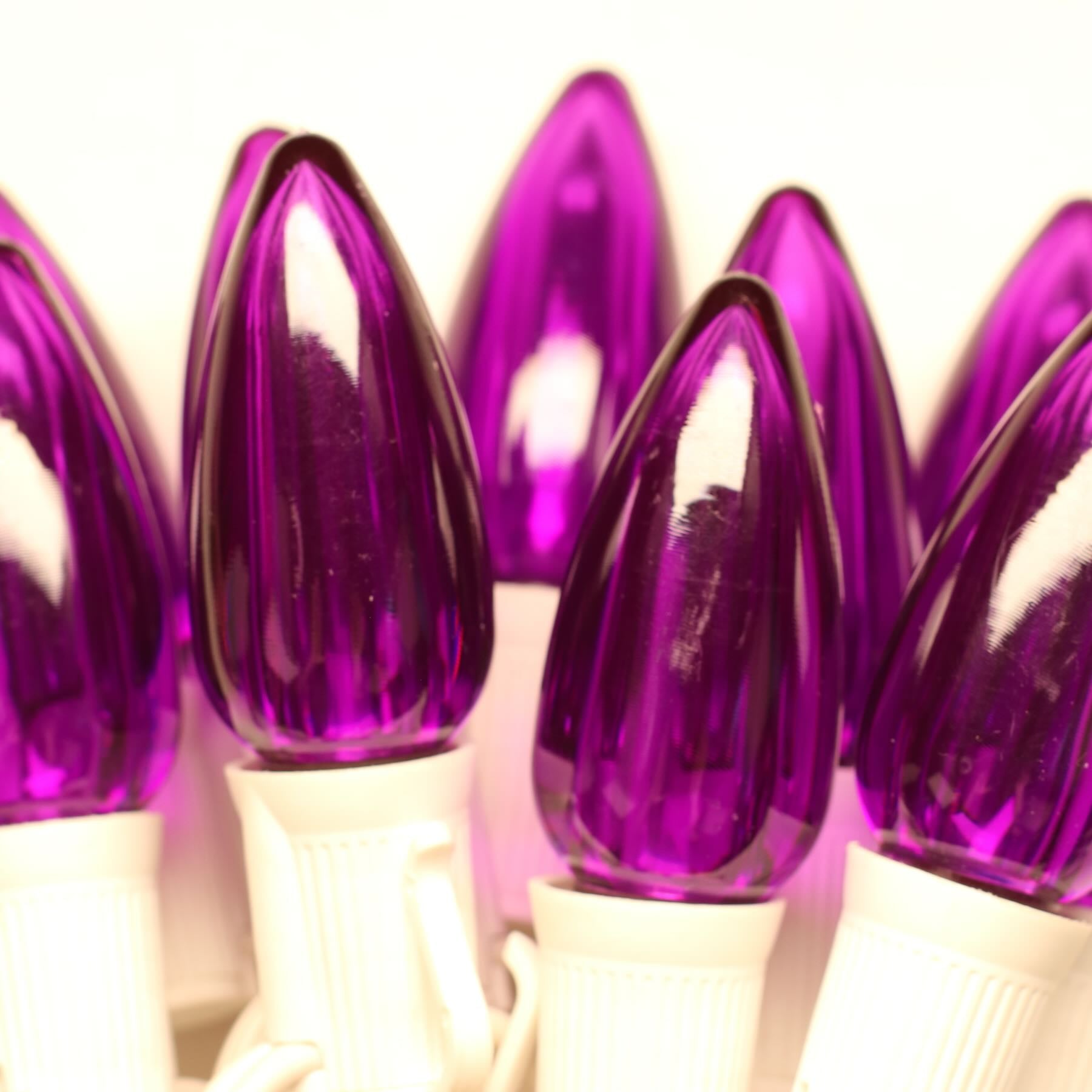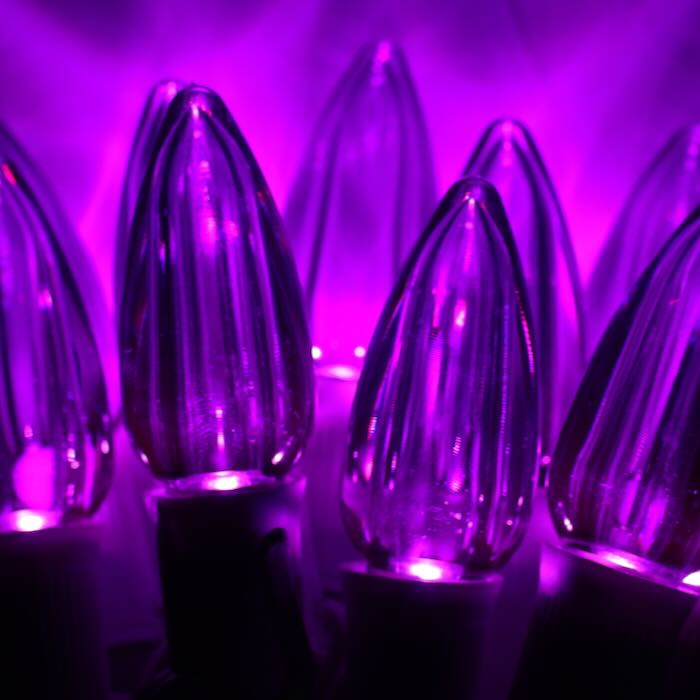 A rich, royal purple with a "glass-like" clarity. Our Illuminance™ Smooth C9 LED Purple bulbs deliver a deep, luxurious glow in a bold C9 size. The clear, transparent shell lets the full, vibrant color shine through for a unique and festive look.