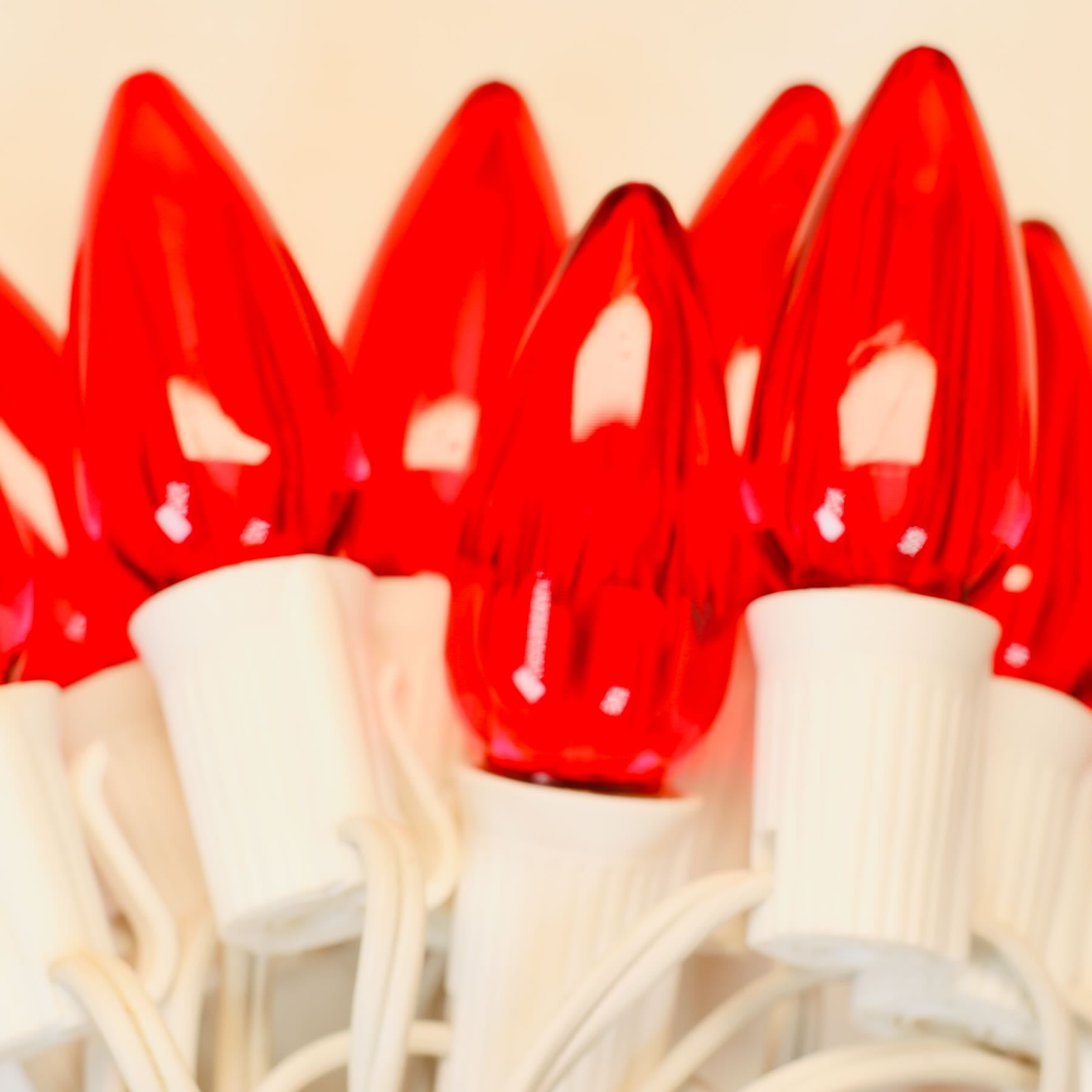 A rich, true-red with a classic "glass-like" finish. Our Illuminance™ Smooth C9 LED Red bulbs provide a deep, festive glow in a bold C9 size. The clear, transparent shell lets the full, vibrant color shine through for a timeless holiday look.