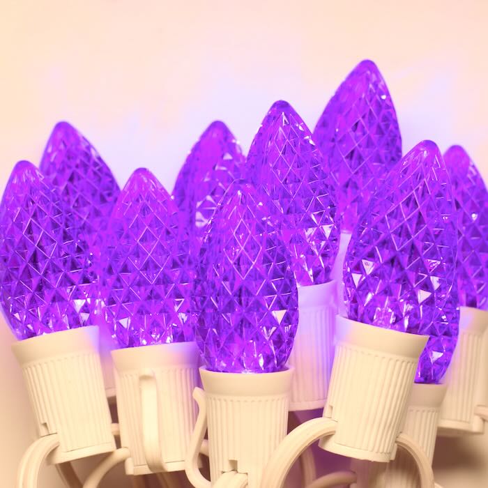 Royal, unique, and brilliantly vibrant. Our Illuminance Elegance™ C8 Purple bulbs deliver a deep, luxurious glow. The C8's faceted lens and SMD LED make this distinct color sparkle for a high-impact, festive look.